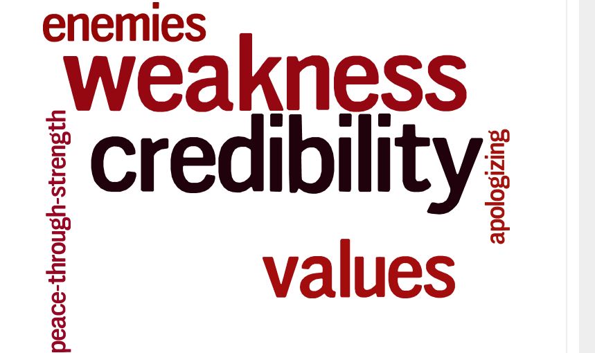 In the alchemy of this rhetorical compound, ordinarily neutral terms such as “values” and “credibility” are appropriated into the discourse of dominance. The rest of the world–the subservient Other–has no credibility and doesn’t share “our” values.